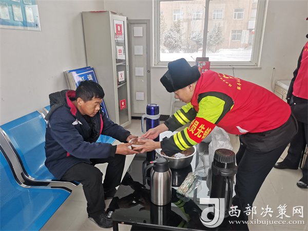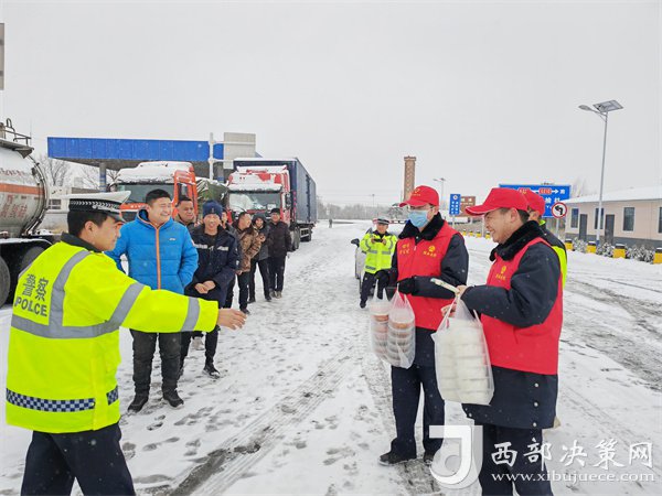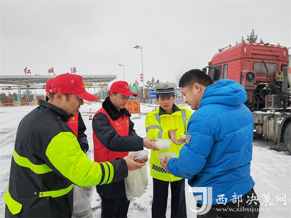 这有小米粥、炸油饼,鸡蛋还热乎着……”榆靖分公司志愿者暖心地喊着话。“行动是最好的破冰剂”,志愿者们为高速滞留旅客送去食物,顶风冒雪分发给滞留在收费站的司乘人员。一件件穿梭在寒风中的“红马甲”此刻成为了冬日里最美的“志愿红”,让群众在寒意逼人的天气里感受到了一份特别的温暖。大家纷纷表示感谢,“热粥、小菜、松软的馒头下肚,全身都热乎了。”一名滞留司机真诚地感激道。