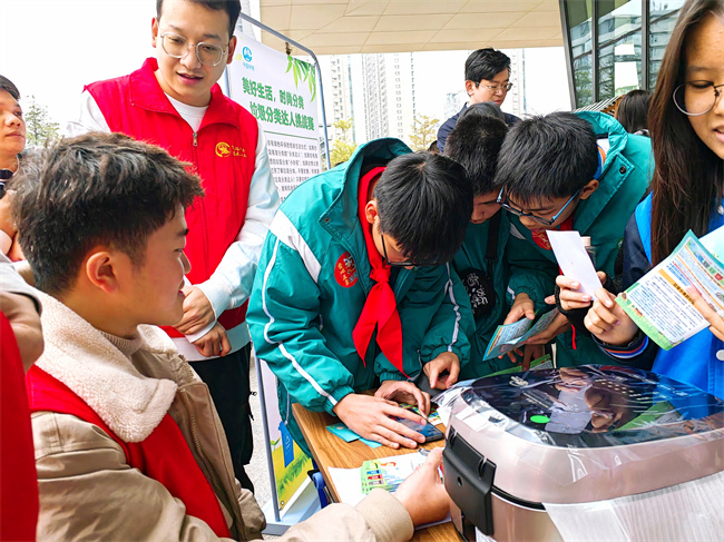 此次志愿服务活动采用现场教学和有趣的垃圾分类挑战赛等方式,向市民传播垃圾分类的科学知识和绿色环保的生活理念。垃圾分类达人挑战赛现场气氛热烈,答题挑战队伍排成了长龙,每位参与者都跃跃欲试、反复操练,期望在分类游戏挑战赛中取得高分和心仪的奖品。