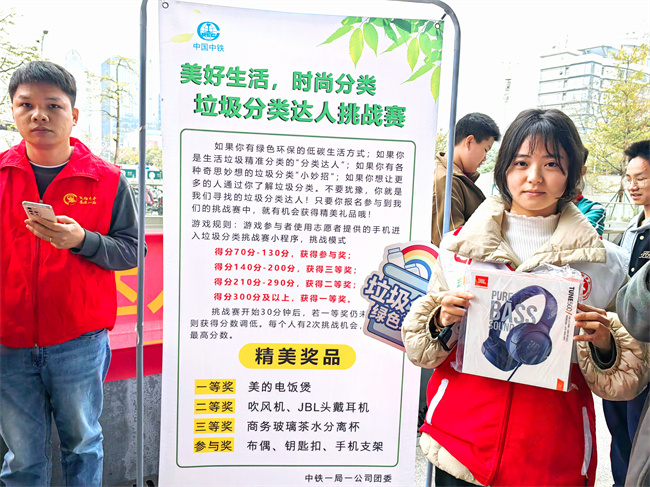 为引导社会各界支持和理解垃圾分类工作,广泛动员公众积极参与,进一步促进习惯养成和文明素质提升,持续营造浓厚的垃圾分类社会氛围。3 月 3 日,中铁一局一公司团委在番禺区图书馆广场举办了“美好生活,时尚分类”垃圾分类达人挑战赛!