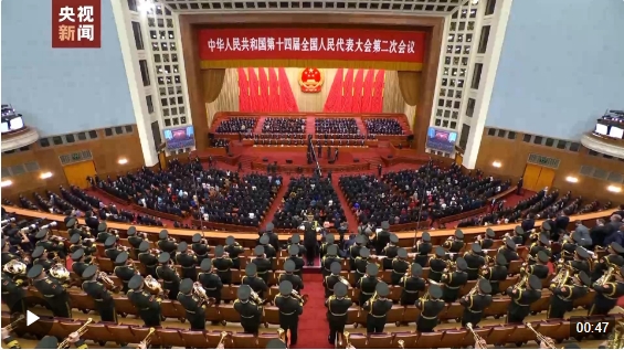 3月11日下午3时,十四届全国人大二次会议在北京人民大会堂举行闭幕会。中共中央总书记、国家主席、中央军委主席习近平等党和国家领导人出席闭幕会。