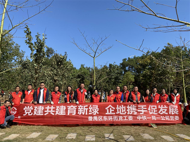 西部决策网讯 3月12日,第46个植树节上午,中铁一局一公司党委与广州市番禺区党工委联合开展“共建育新绿,携手促发展”义务植树主题党日活动,用实际行动深入贯彻习近平生态文明思想,牢固树立和践行绿水青山就是金山银山的理念,推进绿美广东生态建设,助推广东高质量发展。