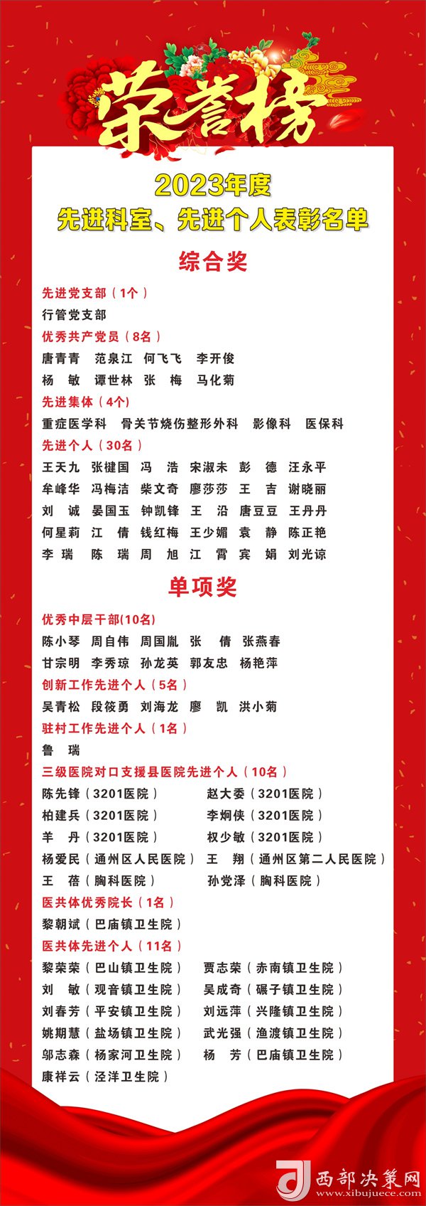 会议宣读并表彰了2023年度医院的先进集体和先进个人。