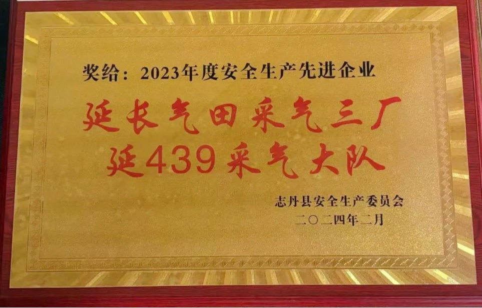 西部决策网讯 近日,从志丹县安全生产委员会传来喜讯,延439采气大队被授予志丹县“2023年度安全生产工作先进企业”荣誉称号。