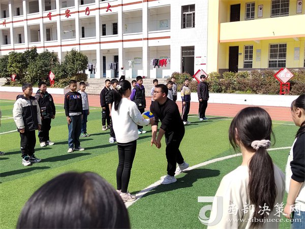康阳阳老师在体育汇报课上为学生讲解排球击球要领