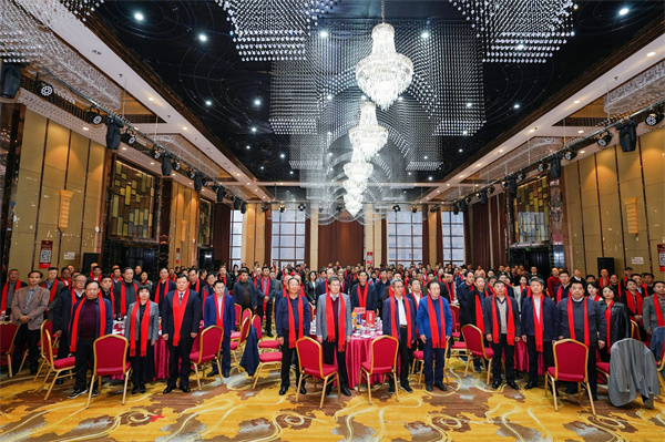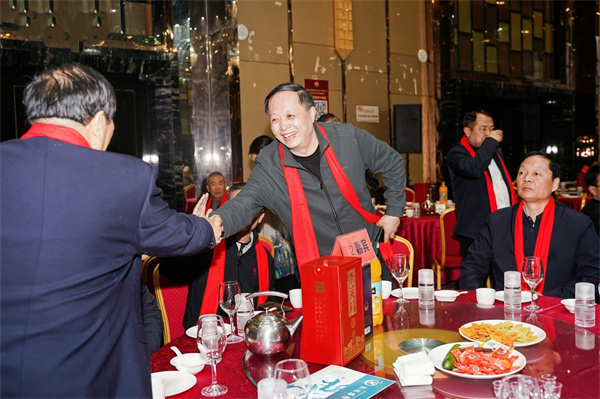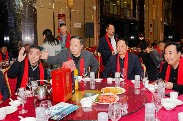 贾申龙会长率领商会领导班子致敬酒词,感谢各位来宾的厚爱与支持。新一届商会将继续发扬团结协作的精神,不断拓展业务领域,提高服务质量,进一步加强与各界朋友的交流合作,为家乡经济发展做出更大的贡献!