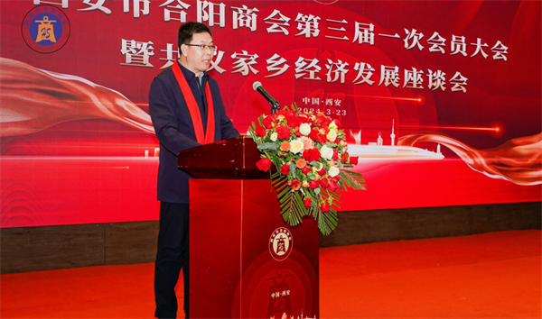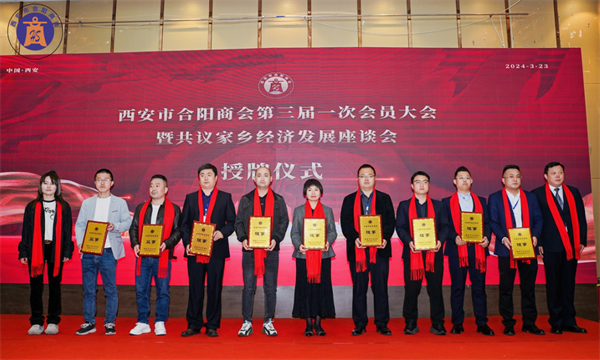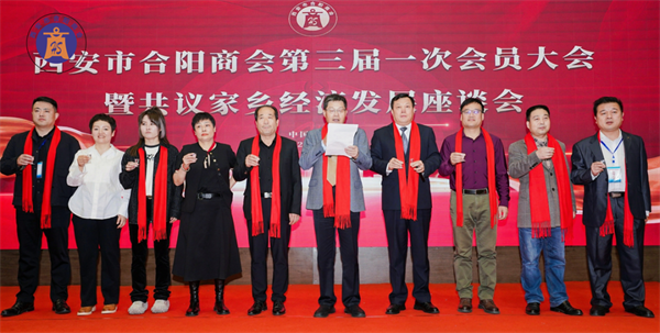 西安市合阳商会第三届一次会员大会暨共议家乡经济发展座谈会于2024年3月23日在西安金莎国际酒店隆重召开。此次大会以“筑梦新时代·共赢新未来”为主题,旨在促进商会成员间的交流与合作,共议家乡经济发展之道。大会邀请了众多商会会员、政商界人士和媒体代表参加,现场气氛热烈,成果丰硕。