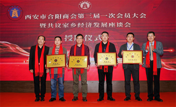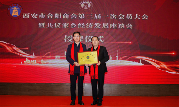 西安市合阳商会会长贾申龙先生和监事长刘自力先生为副会长单位授牌。