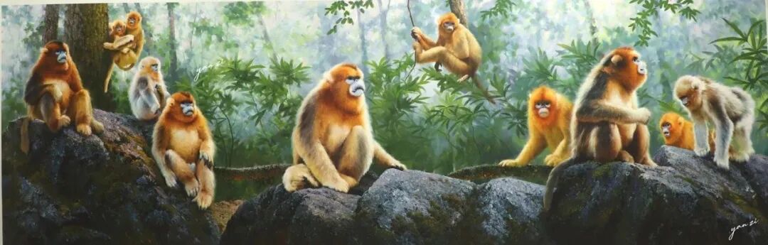 它们原是秦岭写就的活态诗篇。哺乳时的柔,是山林教给的珍视;梳毛时的细,是血脉里淌的和睦;望山时的静,是岁月沉淀的知足。这些智慧,都淬在那身棕黄毛发里:金是晨光的暖,是晚霞的柔,墨是松林的静。三色缠在一处,不只是生命的华服,更是“天人共生”最真的模样——不在经卷上,在母猴哺幼的臂弯里,在群猴戏水的涟漪中,在成年猴望山的眼神里。