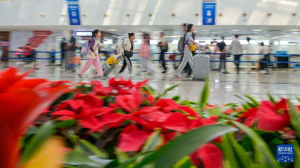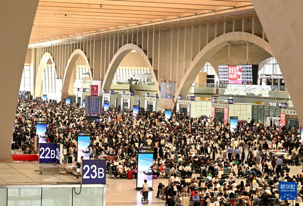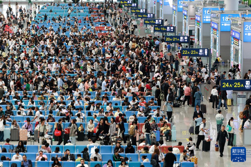 10月1日,旅客在贵州省贵阳北站候车大厅候车。