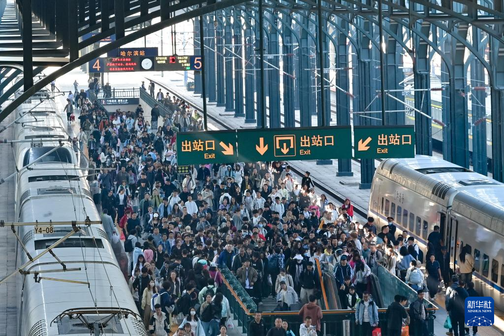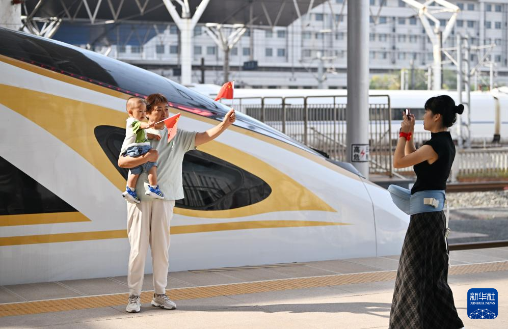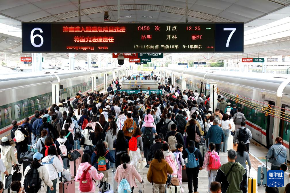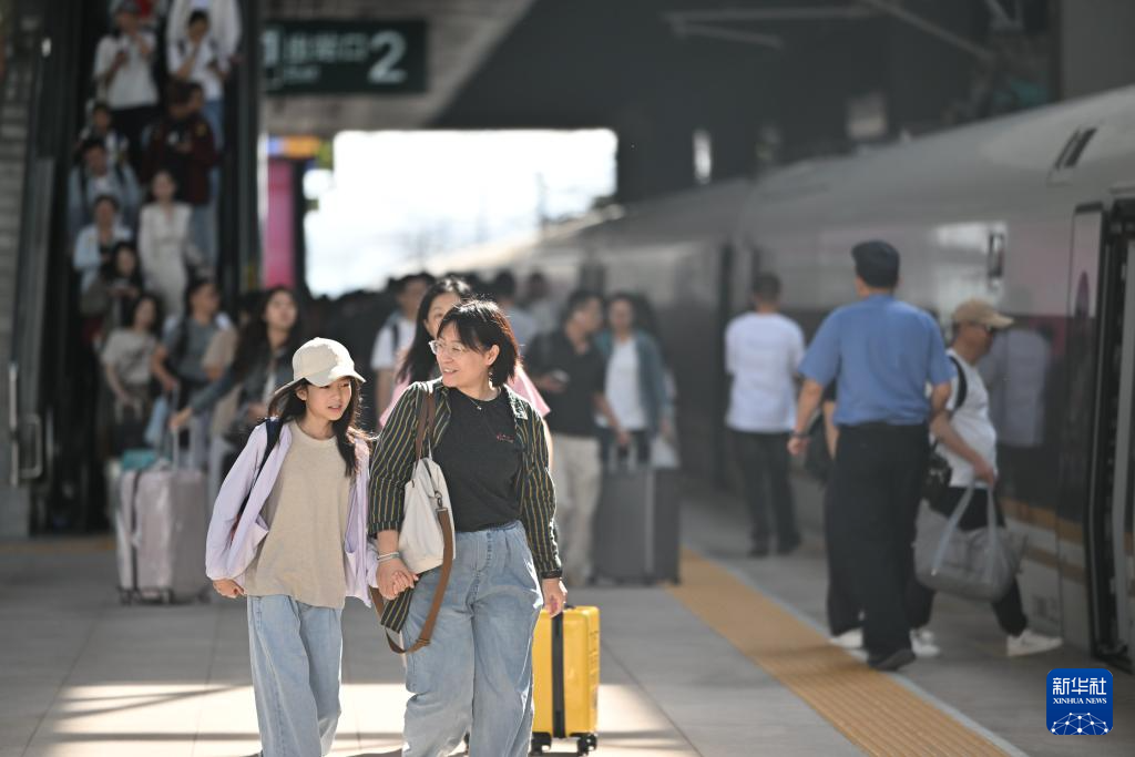 10月1日,旅客在贵州省贵阳北站站台上候车。