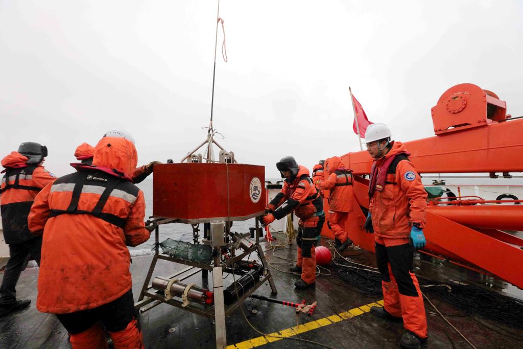 “难得的好天气,没雾没浪也没海冰,水深不到200米,与有难度的冰区回收相比,今天应该会比较顺利。”负责回收的队员任健说。
