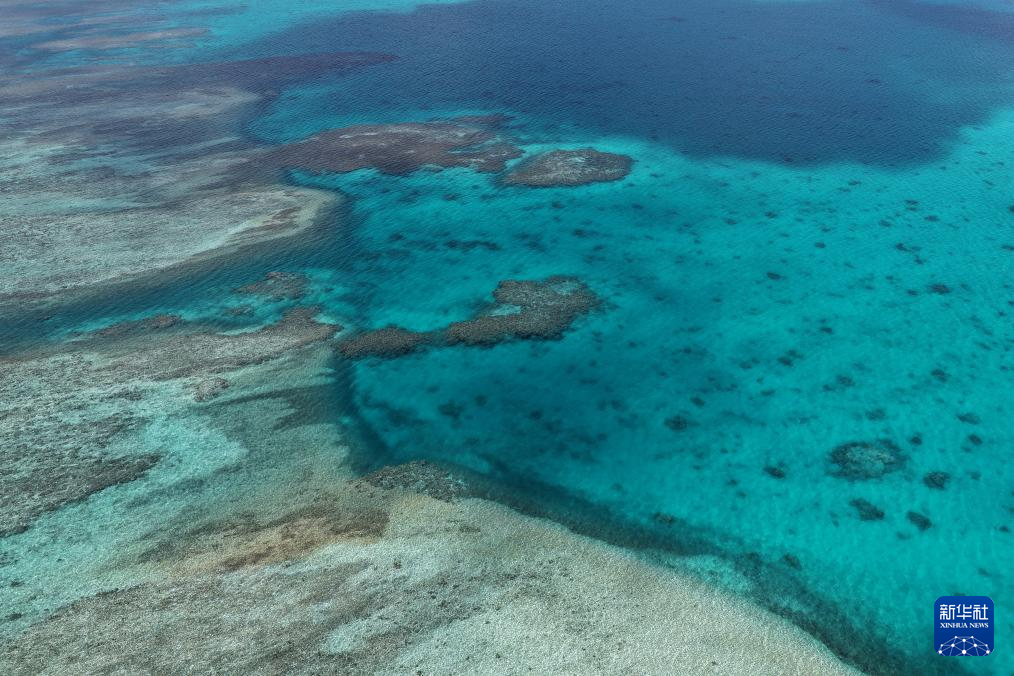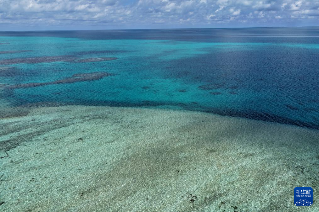10月2日拍摄的黄岩岛礁盘与潟湖。