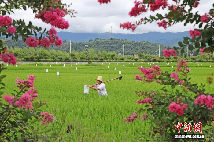陕西洋县农户在有机田内劳作。(洋县县委宣传部供图)