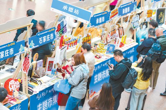 “无论是追求效率的快旅还是偏爱深度的漫游,河北都近在咫尺。”来自河北省的推荐官们向南来北往的旅客推荐河北文旅景区。集市上,邯郸面塑、保定甜面酱、丰宁满族剪纸等非遗产品,让人目不暇接,衡水内画、唐山陶瓷杯成为备受青睐的旅行纪念品。
