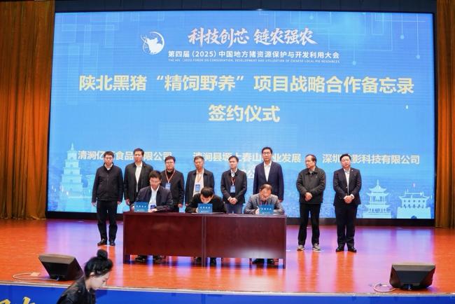 在与会嘉宾的共同见证下,大会现场完成了三项重要合作协议的签署,标志着产学研用深度融合迈出实质性步伐。合作内容覆盖产业技术创新应用、特色养殖模式探索以及市场渠道拓展等核心环节。这一系列合作将从技术、项目到销售为清涧黑毛土猪产业搭建全链条支撑体系,为区域特色产业迈向更广阔市场注入强劲动能。