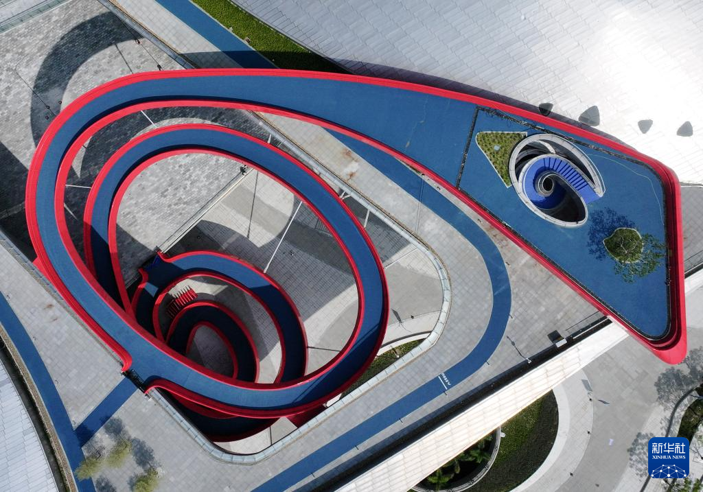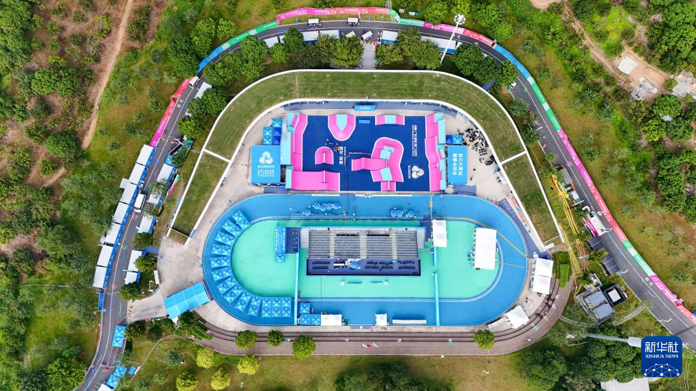 深圳市光明区虹桥公园(10月25日摄,无人机照片)。全运会自由式小轮车比赛在这里举行。新华社记者 梁旭 摄