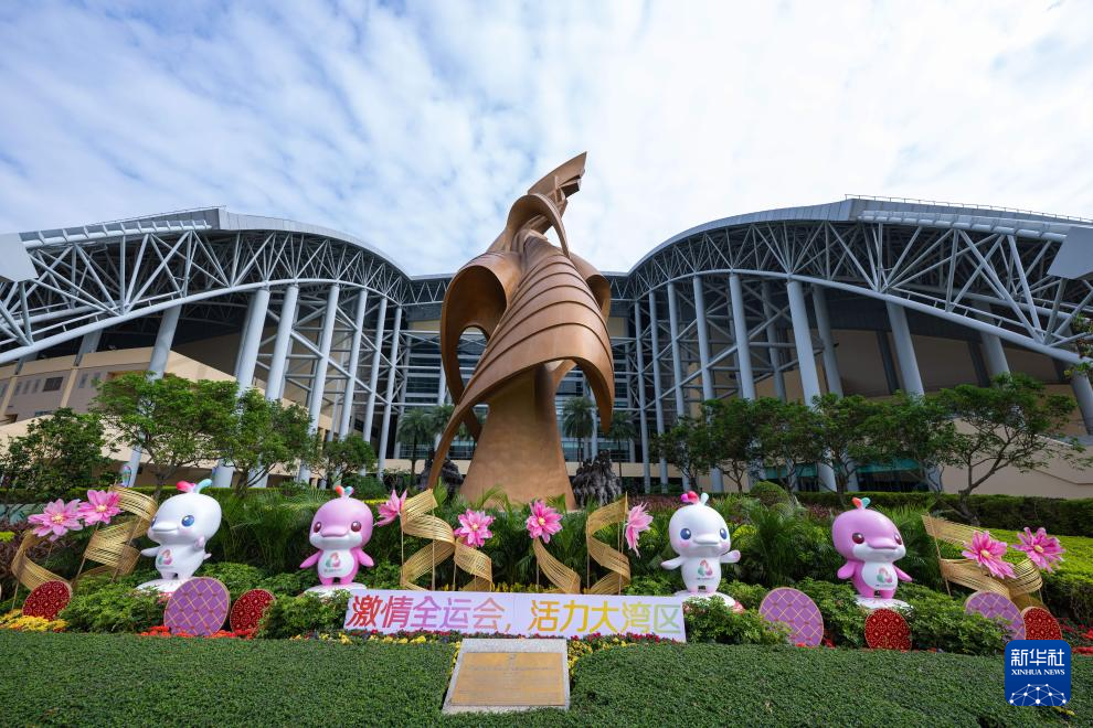 位于广州的广东省奥体中心游泳跳水馆外景(10月17日摄)。全运会跳水、水球比赛在这里举行。新华社记者 毛思倩 摄