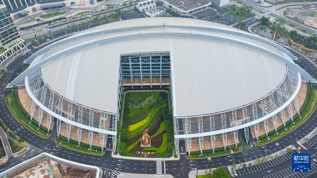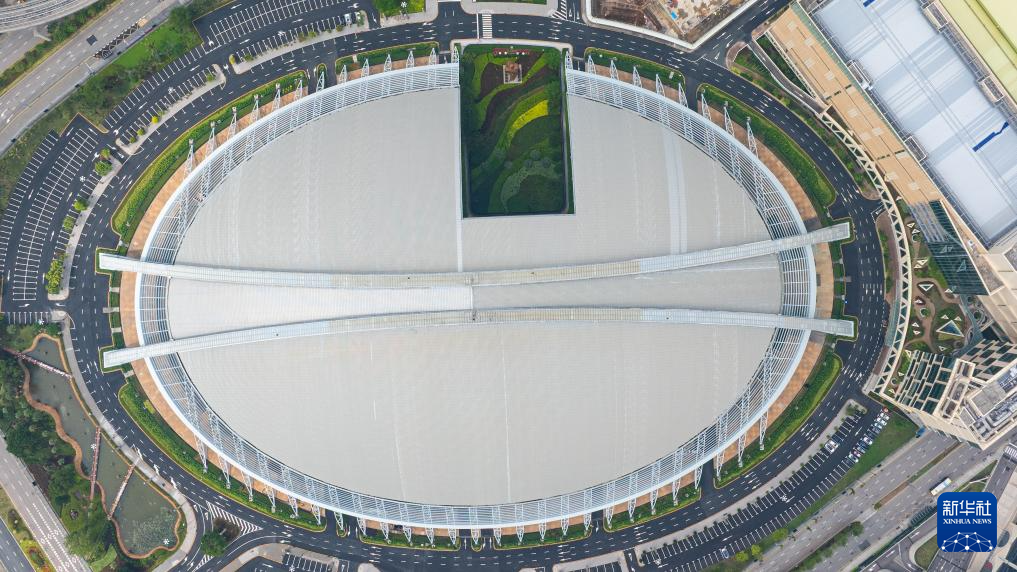 深圳湾体育中心(10月19日摄,无人机照片)。全运会篮球女子22岁以下组、马拉松比赛在这里举行。其中,全运会马拉松比赛从深圳湾体育中心周边道路起跑,以深圳湾大桥为纽带,横跨深圳、香港两地,最后回到深圳湾体育中心。新华社记者 梁旭 摄