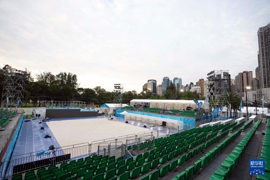 香港维多利亚公园沙滩排球场地(10月25日摄)。全运会沙滩排球比赛在这里举行。新华社发(吕小炜摄)