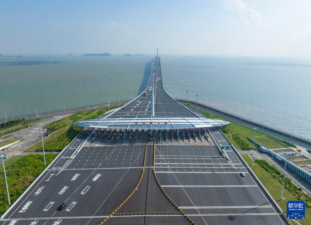 港珠澳大桥(10月19日摄,无人机照片)。港珠澳大桥是全运会公路自行车项目途经地,一桥串联粤港澳三地。新华社记者 毛思倩 摄