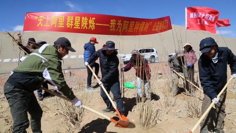 2024年5月,响应陕西省第十批援藏队号召,陕建控股集团援藏干部刘肖(左)积极参加“我为阿里种棵树”活动。