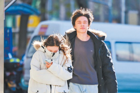 昨天,京城迎来大风降温天气,在丰台区蒲黄榆路口,大风让行人感受到冬日寒意。 记者 邓伟摄