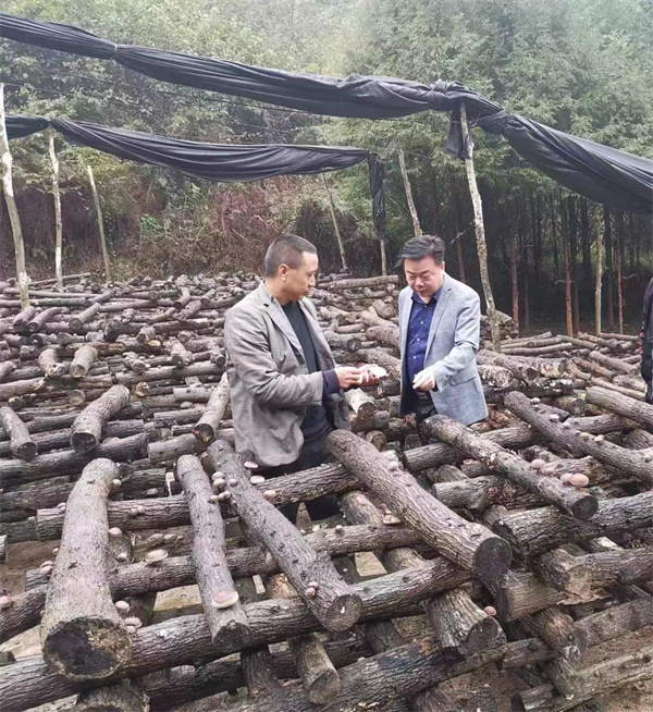 南郑区圣水镇人民政府镇长钟宁(右)与香菇种植者尤志林亲切交流