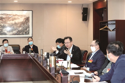 2022年11月9日,陕西省政协十二届常委会第二十五次会议在西安召开,会议围绕学习贯彻中共二十大精神,研究部署全省政协学习贯彻二十大精神具体方案。图为常委们在小组讨论会上进行交流。