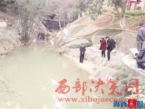 据落水男孩介绍,2月9日傍晚,他和其他两个小伙伴在龙海市石码镇紫云公园望江亭旁的水塘边玩耍,他沿着邻水斜护坡行走,想爬到旁边的石龟背上玩,不慎失足落入水中。