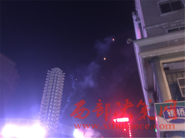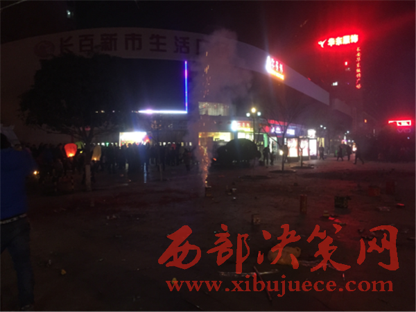 21时,我社工作人员赶到了李女士所居住的长安区步行街北口,见道路两边停满了车辆,交通严重堵塞。广场上鞭炮声震耳欲聋,烟花四溅,空中浓烟滚滚,硝烟刺鼻。平均不到5分钟就有一盏孔明灯迎空而上,现场围满了看热闹的市民。在现场,一家卖烟花爆竹的摊位生意格外红火,摊主在没有任何防护措施的情况下就做起了买卖。