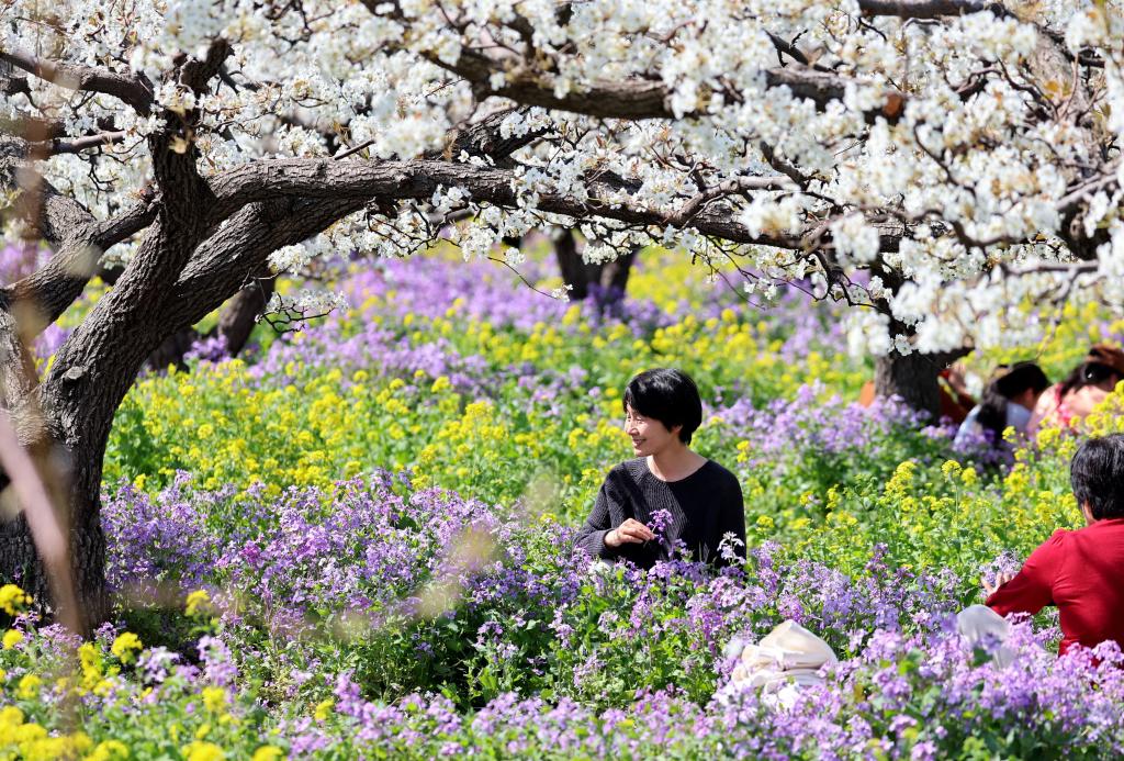 游客在河北省晋州市周家庄乡第九生产队梨园赏花
